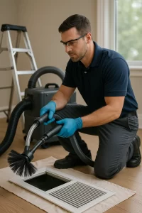 Not included: HVAC repair, duct sealing, coil or blower motor rebuilds, asbestos abatement, or cosmetic work (we don’t paint/caulk registers or patch drywall). Sections that are unsafe, damaged, or inaccessible may be excluded—your technician will point these out and document them.