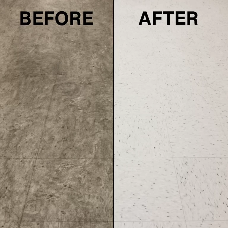 We begin with an inspection to identify the floor type (LVP/LVT, laminate, or sheet vinyl), trouble spots, and any acrylic “polish” build-up.